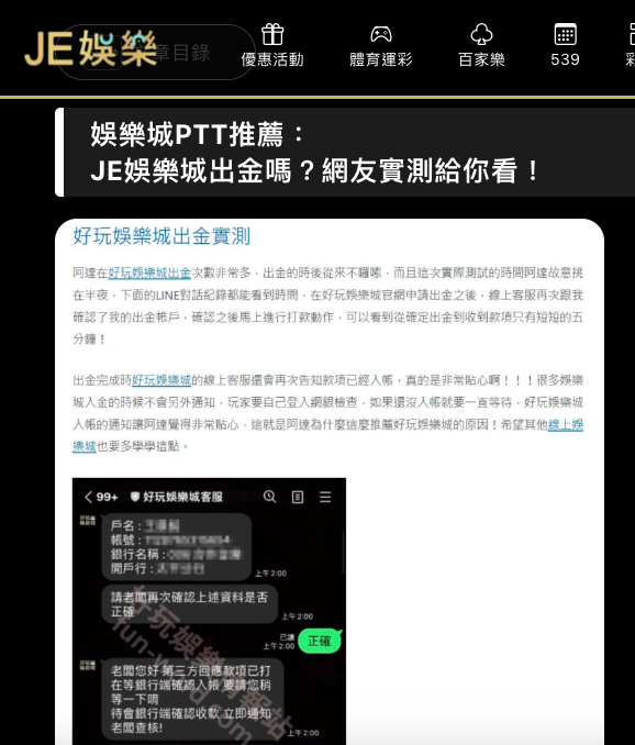 各位可以先看看它們的logo,幾乎長的完全一樣,無論是從字體、色調來看,小編可以非常斷定JE娛樂城就等於是好玩娛樂城!再來小編又進去看JE娛樂城是否會出金的文章,結果文章裡面的圖竟然全部都沒改!原封不動的使用好玩娛樂城的出金圖,奇怪了,好玩娛樂城如果經營得好好的為什麼還要創一間新的娛樂城呢?雖然從這點不太能判斷3A娛樂城詐騙的真實性,但是小編還是有持續再進行調查,